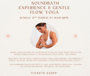Spend your Mother’s Day morning with Kelsea from Inner Yoga in the serene Garden Room at Leighinmohr House Hotel, Ballymena.